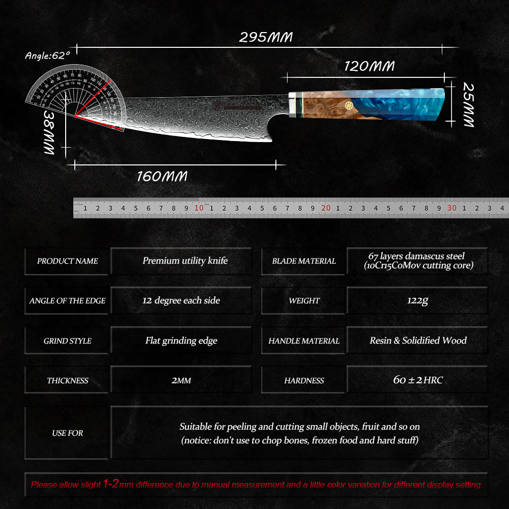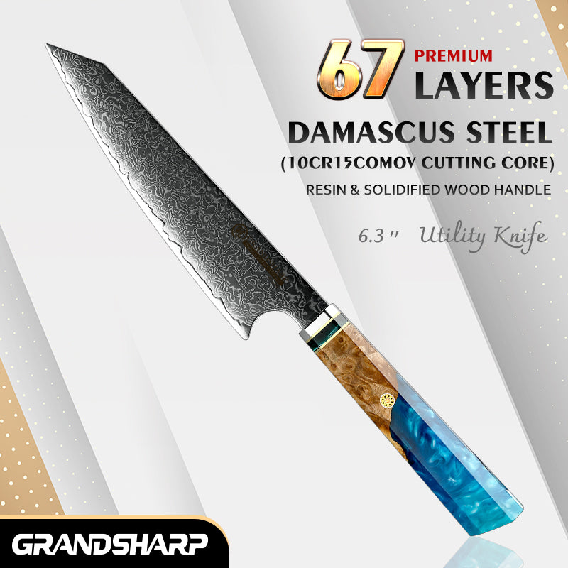 6.5 Inch Utility Knife AUS-10 Japanese Damascus Kitchen Chef Knives Meat Slicing Fruit Vegetables Chopping Knife Grandsharp
