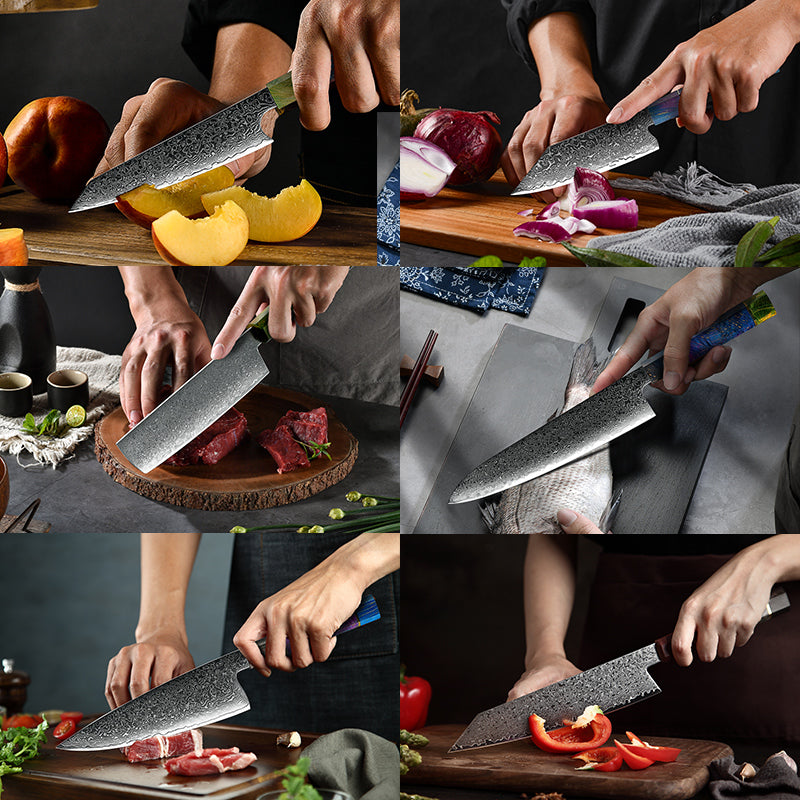 Professional Damascus Kitchen Knife vg10 Japanese Stainless Steel Chef Knife Meat Gyuto Utility Kiritsuke Butcher Cutter Tools