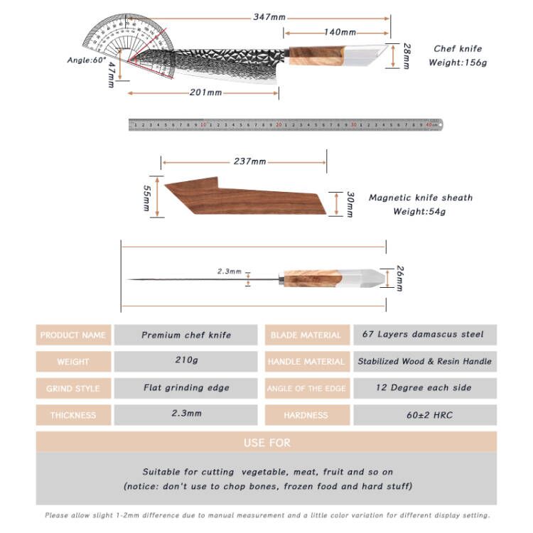 1 * 8 inch Damascus Chef Knife ​1 * Wooden Sheath ​1 * Gift Box