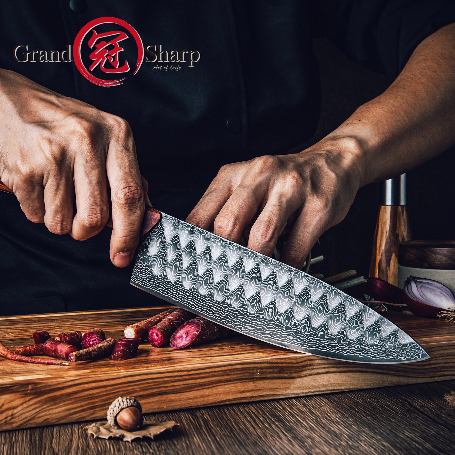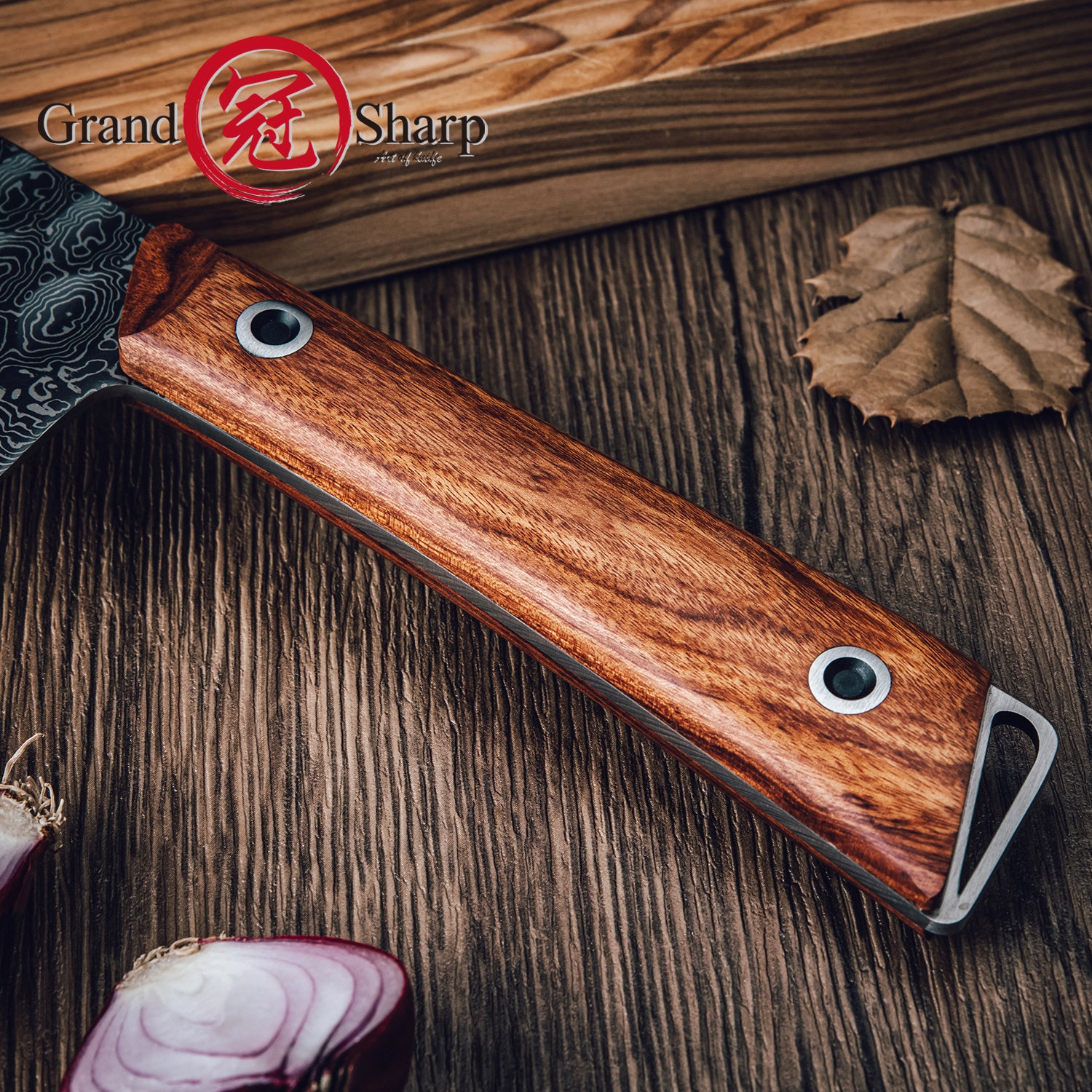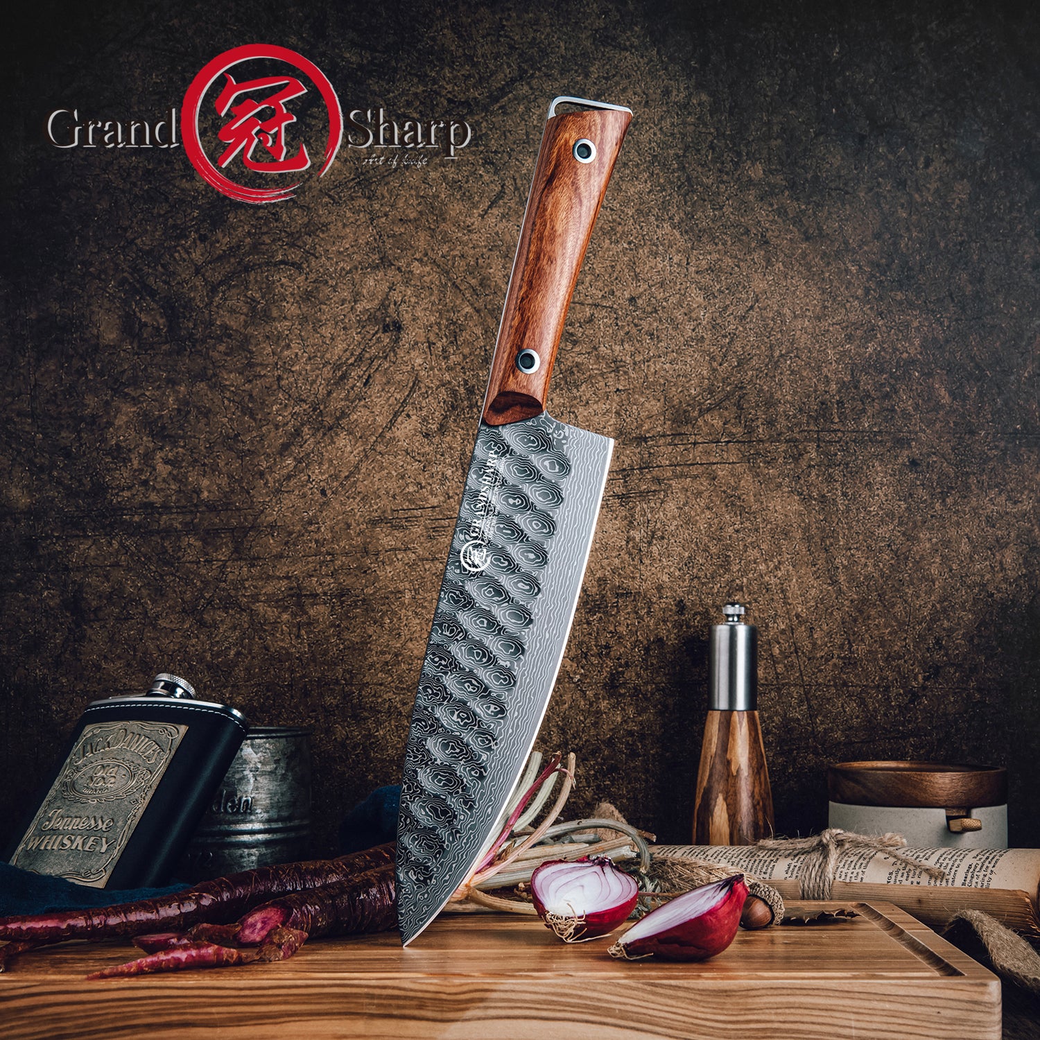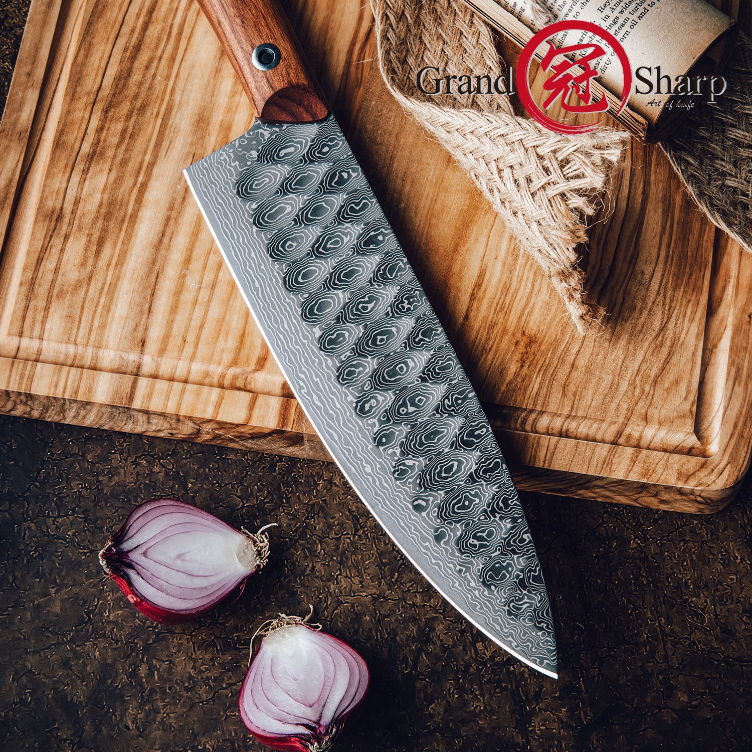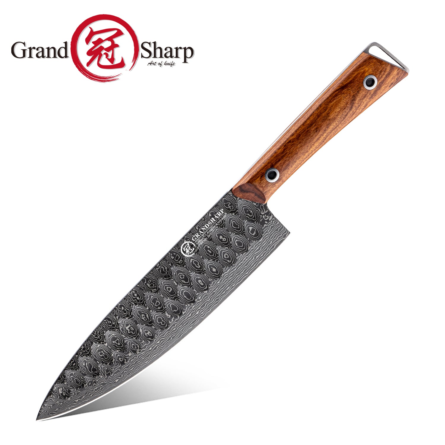 Grandsharp 8 Inch Premium Chef Knife 67 Layers 10Cr15MoV Core Damascus Steel Africa Rose Wood Handle with Gift Box Santoku