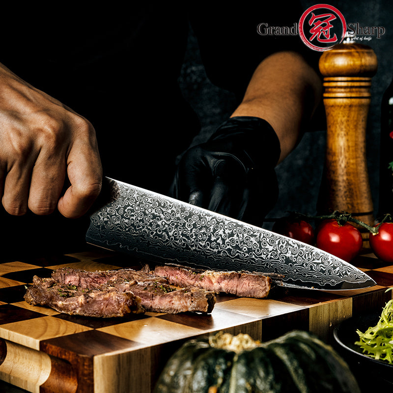 Grandsharp 8''Chef Knife 67 Layers damascus Steel 10Cr15C0Mov Kitchen Knife Vegetable Meat Cooking Tools with White Resin Handle