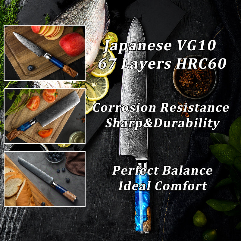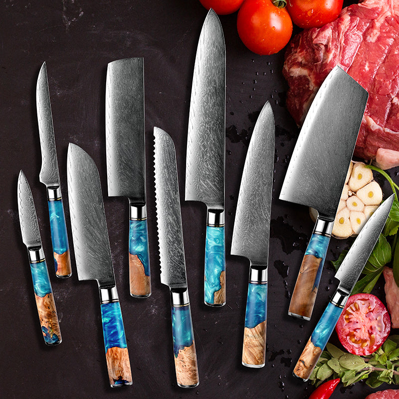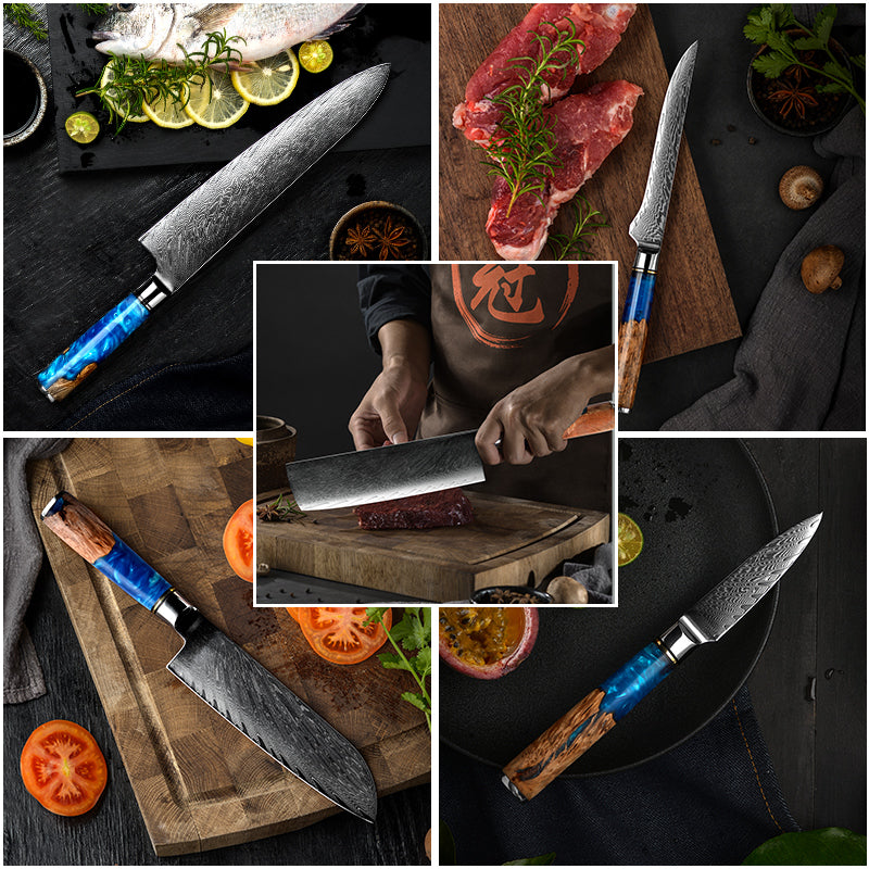 Damascus Kitchen Knives vg10 Japanese Stainless Steel Chef Santoku Cleaver Bread Utility Paring Boning Knife Cooking Tools