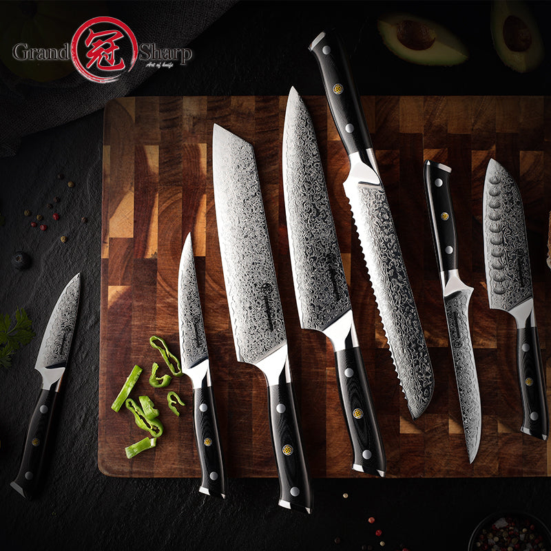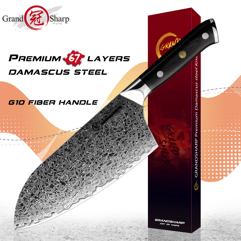 Grandsharp Damascus Knife Set 67 Layers AUS-10 Japanese Damascus Steel Chef Cleaver Boning Kiritsuke Santoku Kitchen Knives