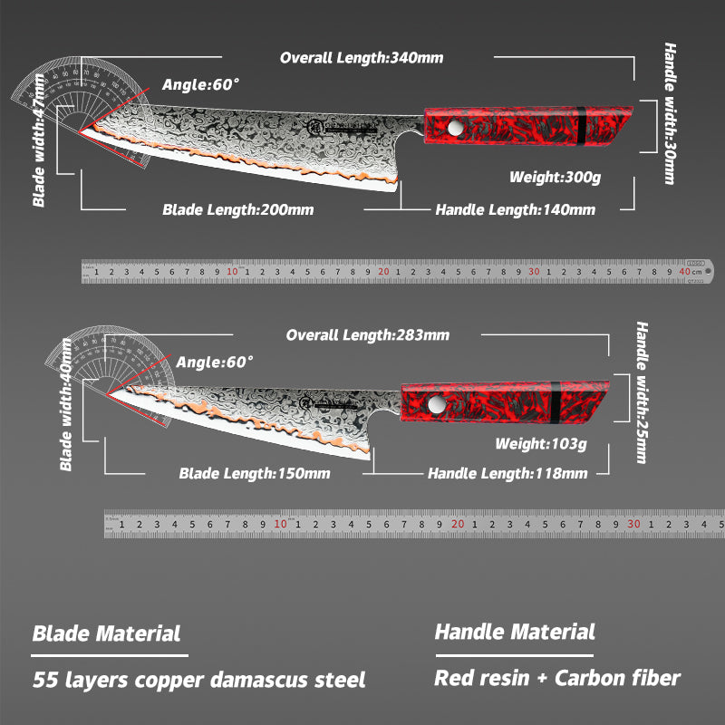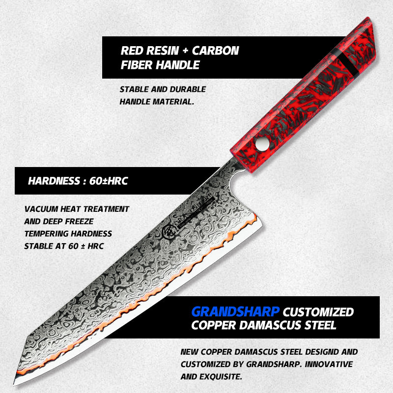 Grandsharp Kitchen Knife 2Pcs Set 55 Layers Copper Damascus Steel Kitchen Accessories Chef Meat Vegetable Slicer Cooking Tools
