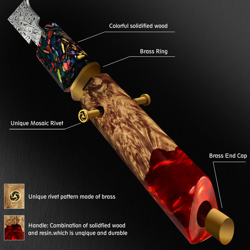 Handle Material: Resin + Solidified Wood + Rivet Fixing