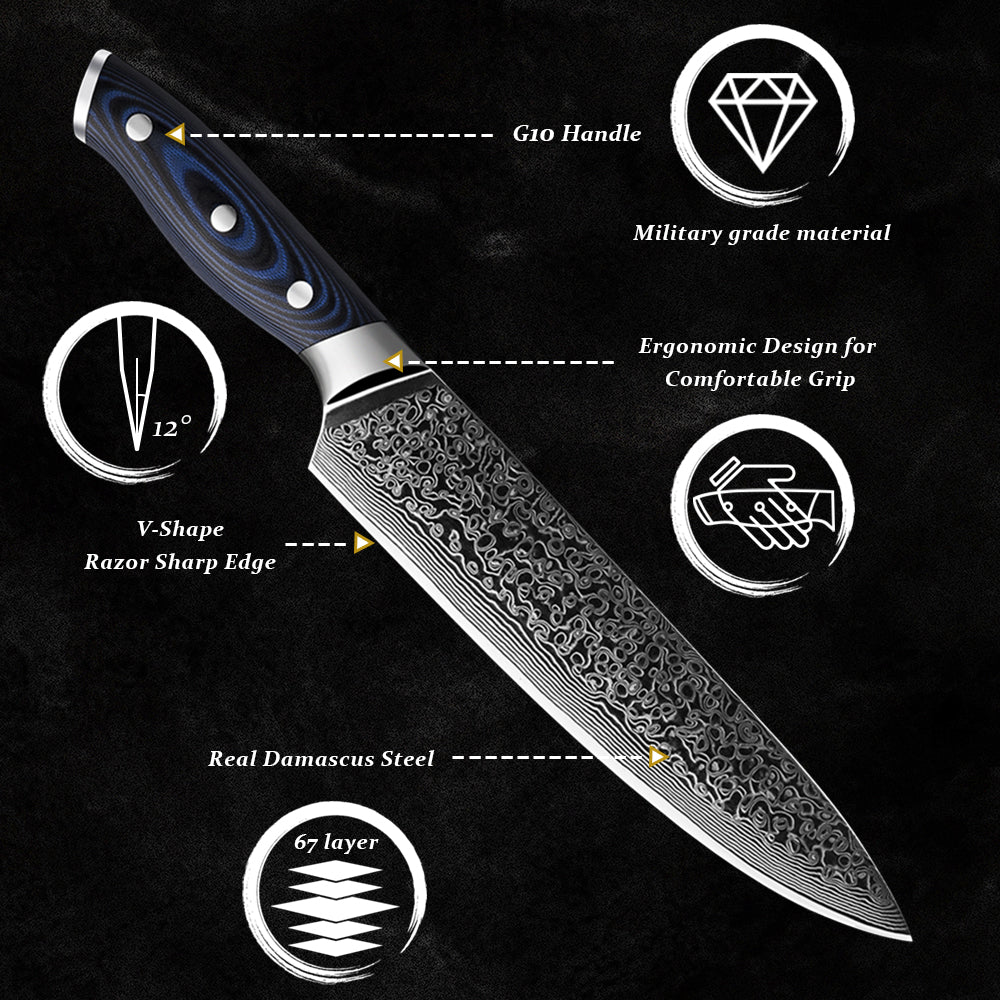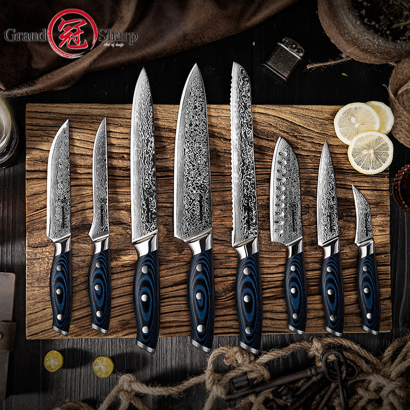 Damascus Kitchen Knives 67 Layers AUS-10 Japanese Steel Chef Santoku Boning Utility Slicing Knives