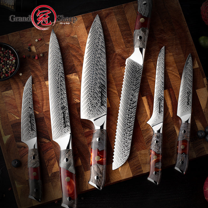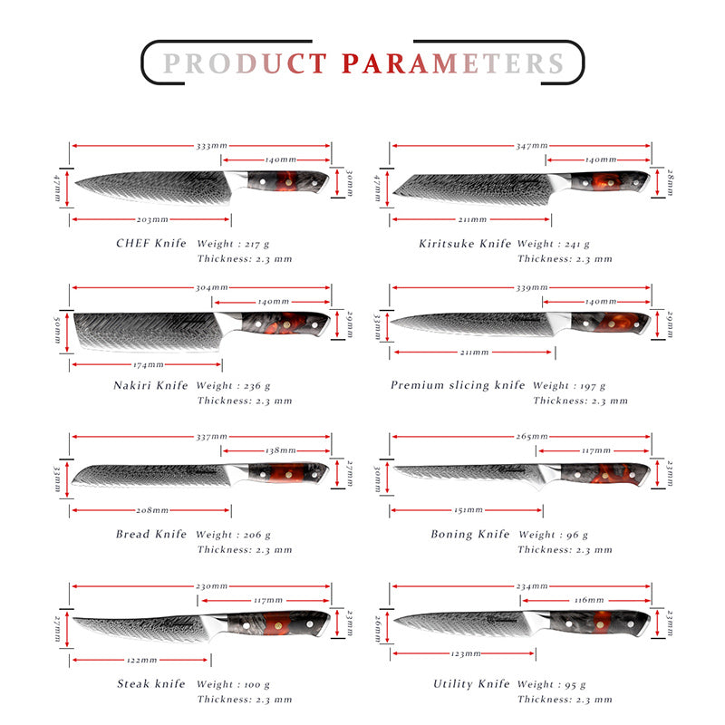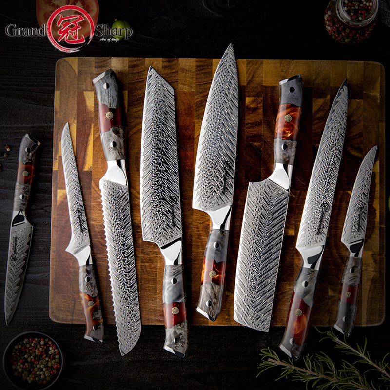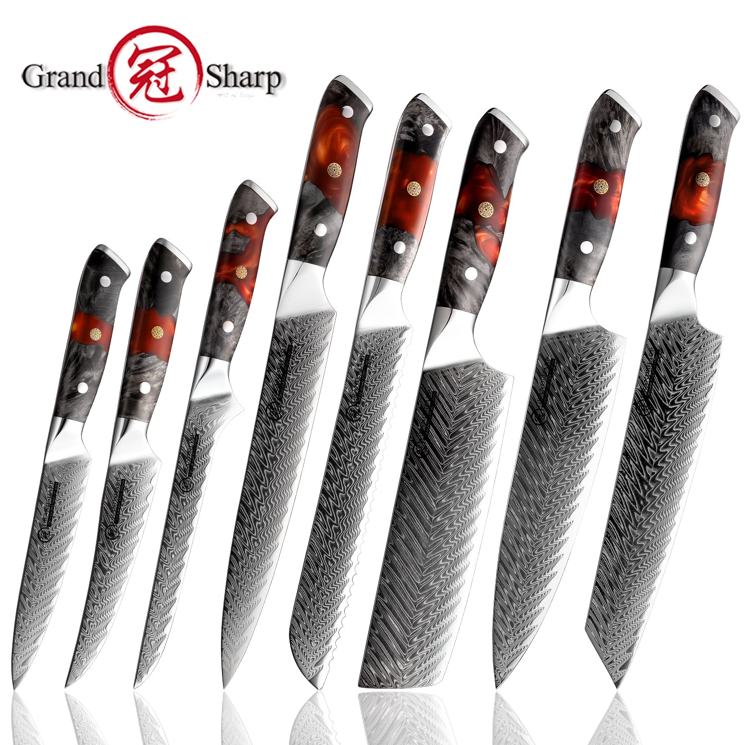 8 Pcs Knife Set AUS-10 Japanese Damascus Steel Kitchen Chef Knives Kiritsuke Boning Utiltiy Nakiri Knife Vegetables Meat Cutter